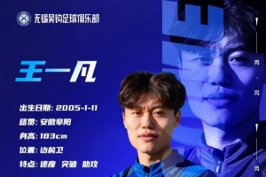 王一凡租借加盟無錫吳鉤足球俱樂部,租借期至2026年12月31日。希望王一凡在租借期間刻苦訓練,通過更多的比賽累積經(jīng)驗。
