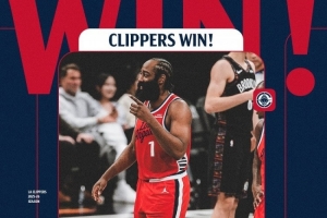 13中10砍31+6帶隊贏球!快船贏球海報:哈登微笑瞬間成為封面