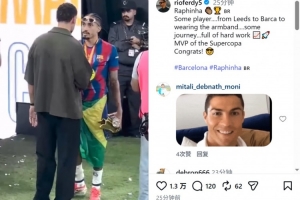 費(fèi)迪南德參與了這場(chǎng)比賽的解說工作,他在社交媒體上曬出賽后與拉菲尼亞交流的視頻,并配文:“拉菲尼亞,真是個(gè)了不起的球員,從利茲聯(lián)到巴薩,再到如今戴上隊(duì)長(zhǎng)袖標(biāo),這是一段充滿汗水和努力的旅程 ???? 西超杯MVP! 恭喜!”