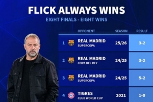 體育資訊1月12日訊 巴薩在本輪西超杯3-2力克皇馬,弗里克延續(xù)了自己執(zhí)教決賽必勝的完美戰(zhàn)績?!掇D(zhuǎn)會(huì)市場(chǎng)》也回顧了這8場(chǎng)比賽的比分。