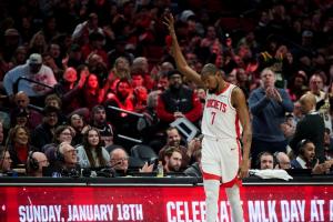 上半場,火箭球星杜蘭特穩(wěn)定發(fā)揮,打了18分鐘7投5中,三分1中0、罰球4中4拿到14分5籃板1蓋帽,正負值+1。