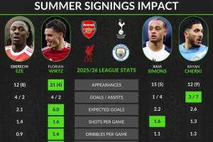 體育資訊2月14日訊 whoscored對(duì)比了英超四大豪門(mén)在去年夏天的攻擊型中場(chǎng)引援,維爾茨和謝爾基表現(xiàn)更好。