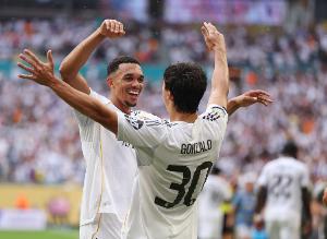 體育資訊2月15日訊 西甲第24輪,皇家馬德里主場(chǎng)迎戰(zhàn)皇家社會(huì),比賽第6分鐘,阿諾德精妙傳中助攻,貢薩洛破門,皇馬1-0領(lǐng)先。