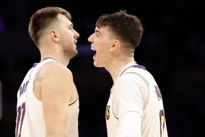 此役湖人外線開火,全隊三分34投19中,命中率高達(dá)55.9%。東契奇三分9中5,詹姆斯三分4中2,拉拉維亞三分4中3。