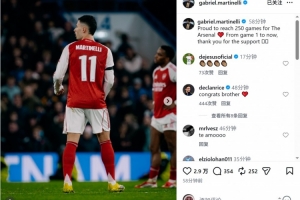 此役馬丁內(nèi)利替補(bǔ)出場(chǎng),達(dá)成阿森納生涯250場(chǎng)里程碑,賽后他在社交媒體上寫(xiě)道:“很自豪為阿森納出戰(zhàn)250場(chǎng)比賽,感謝大家從第一場(chǎng)到現(xiàn)在的支持?!?/p>