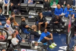 獨行俠隊記Grant Afseth曬出加福德在場邊拉伸腳踝的鏡頭,并寫道:“看起來丹尼爾·加福德正在嘗試?yán)焖挠夷_踝——自訓(xùn)練營以來,這個部位就一直斷斷續(xù)續(xù)地困擾著他。”