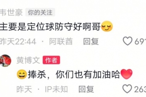 黃博文逗趣回復:捧殺,你們也要加油哈