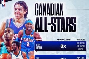 體育資訊1月15日訊 NBA Canada曬出了歷史上入選過全明星的加拿大球員。