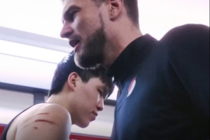 賽后更衣室內(nèi),球隊(duì)臨時(shí)主帥斯普利特滿臉笑容,里斯獲得球隊(duì)本場(chǎng)最佳防守球員,與斯普利特?fù)肀r(shí),楊瀚森的手臂抓傷清晰可見。
