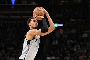 上半場比賽,文班亞馬開局被撞到膝蓋后回更衣室檢查,無礙后回歸賽場,攻防帶隊拉開比分。