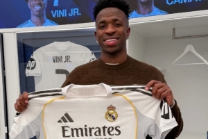 維尼修斯達(dá)成為皇馬出戰(zhàn)350場比賽里程碑,賽后他在社交媒體上曬出與紀(jì)念球衣的合照。