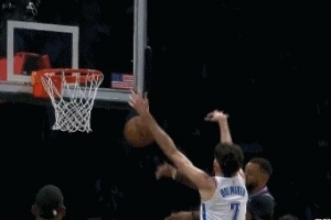 GIF-鮑威爾繞掩護(hù)突破上籃被霍姆格倫攔網(wǎng)式封蓋出界