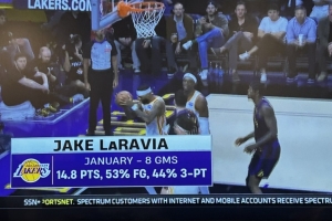 湖人客場挑戰(zhàn)開拓者,轉(zhuǎn)播方給出拉拉維亞1月份的數(shù)據(jù):