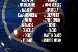 前鋒:7-克瓦拉茨赫利亞、 9-貢薩洛·拉莫斯、10-登貝萊、14-杜埃、29-巴爾科拉