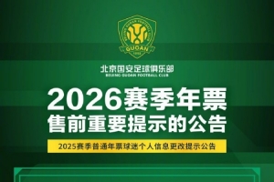 尊敬的球迷朋友,大家好!俱樂部將于春節(jié)假期后啟動2026賽季年票發(fā)售工作。為了方便2025賽季已購年票球迷進行原座位續(xù)購或優(yōu)先選座,請仔細閱讀圖片中的重要提示內(nèi)容